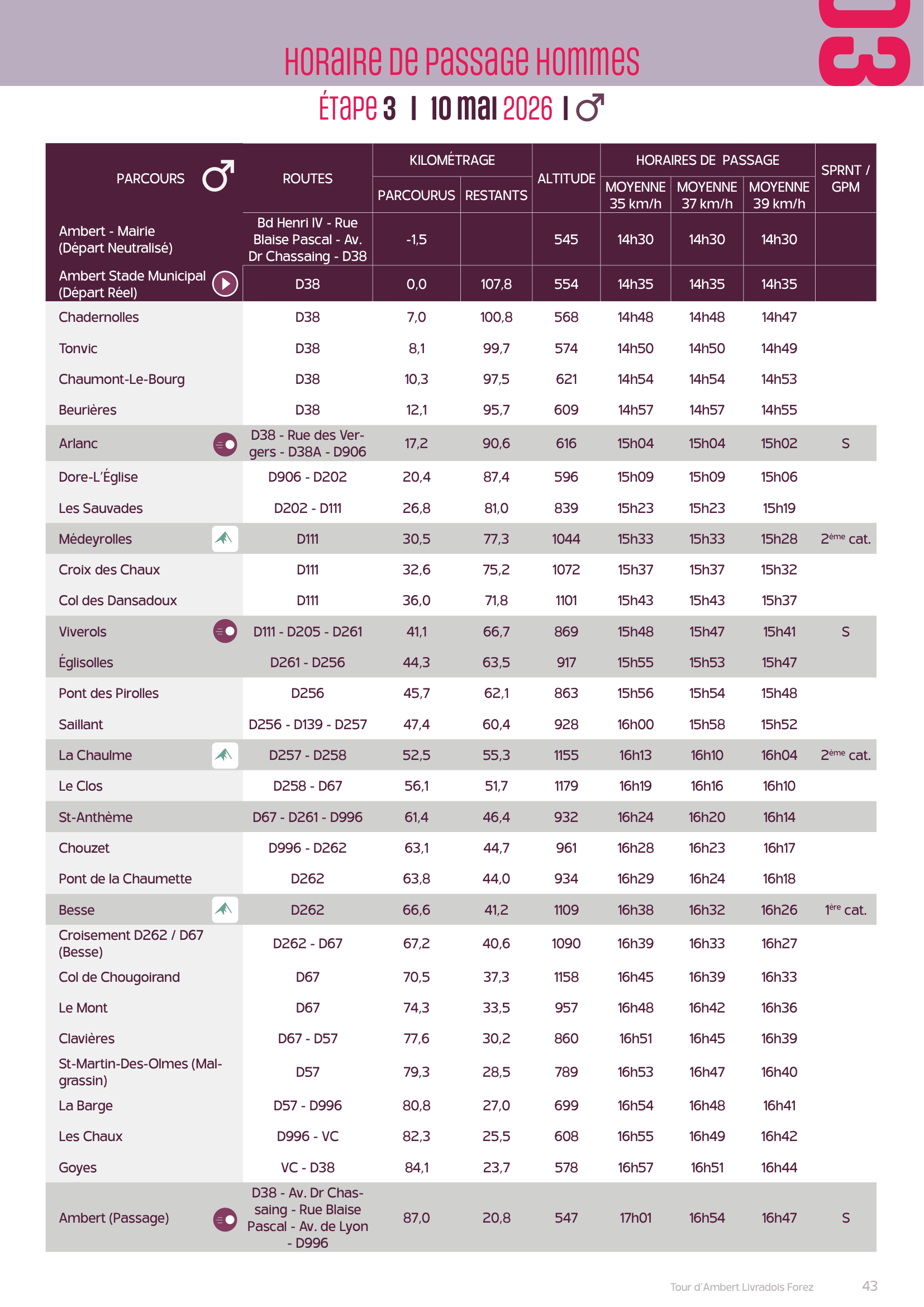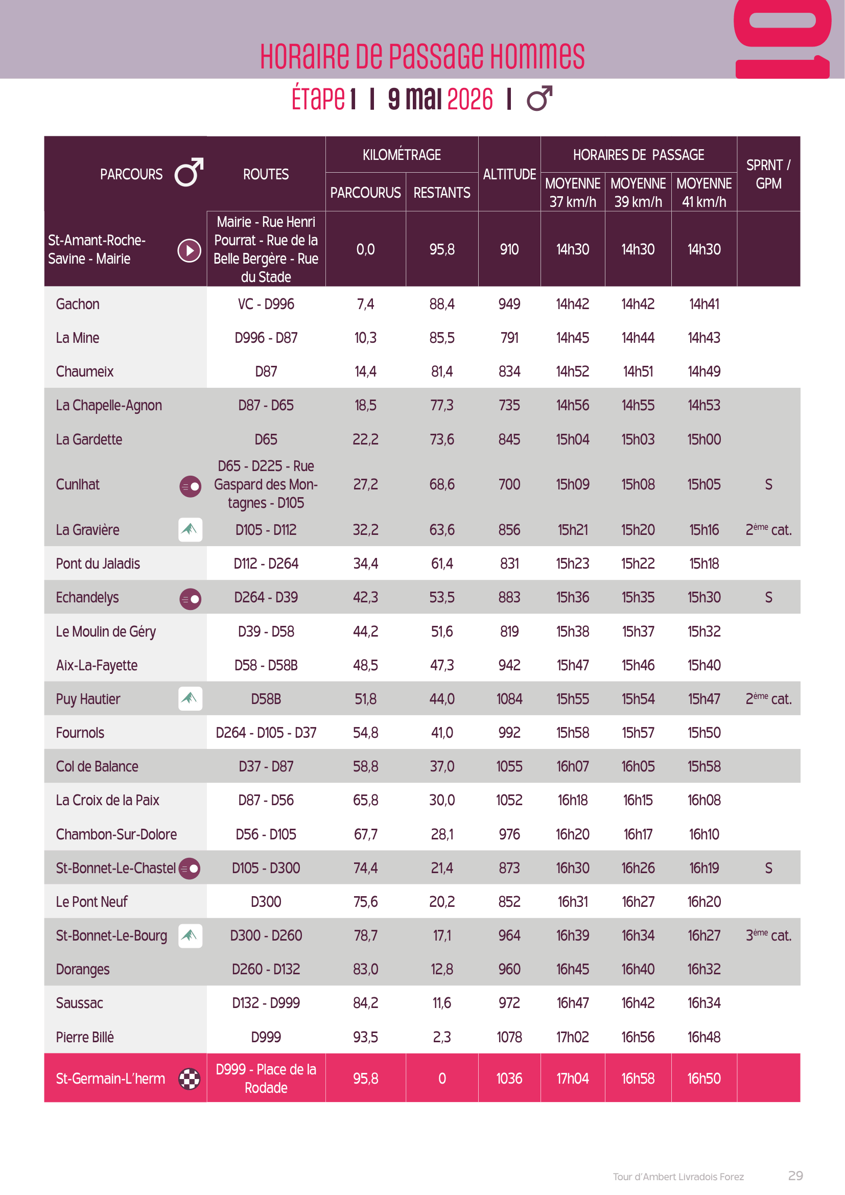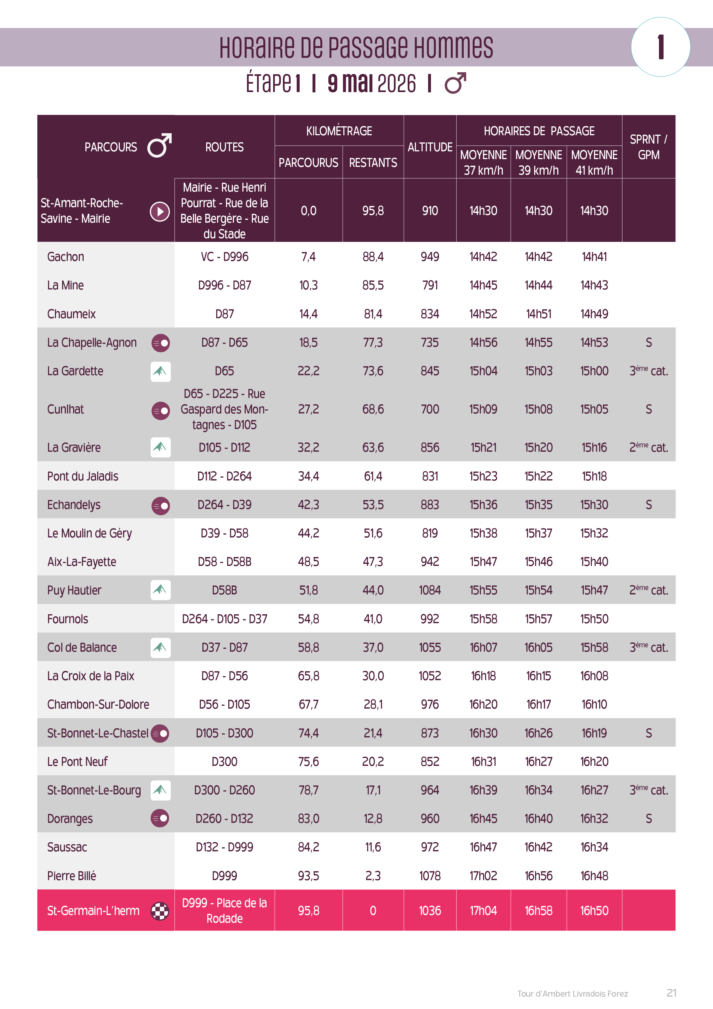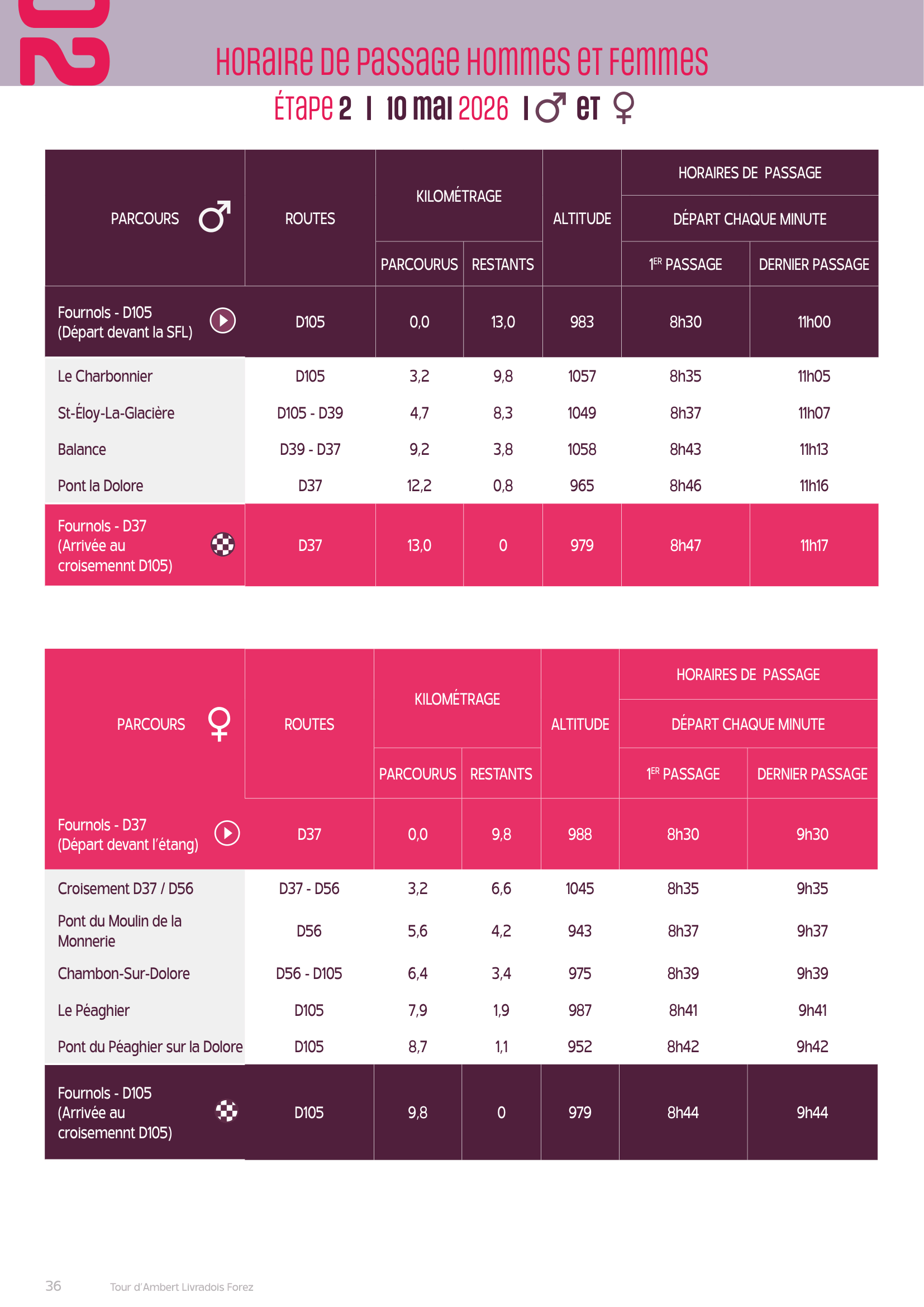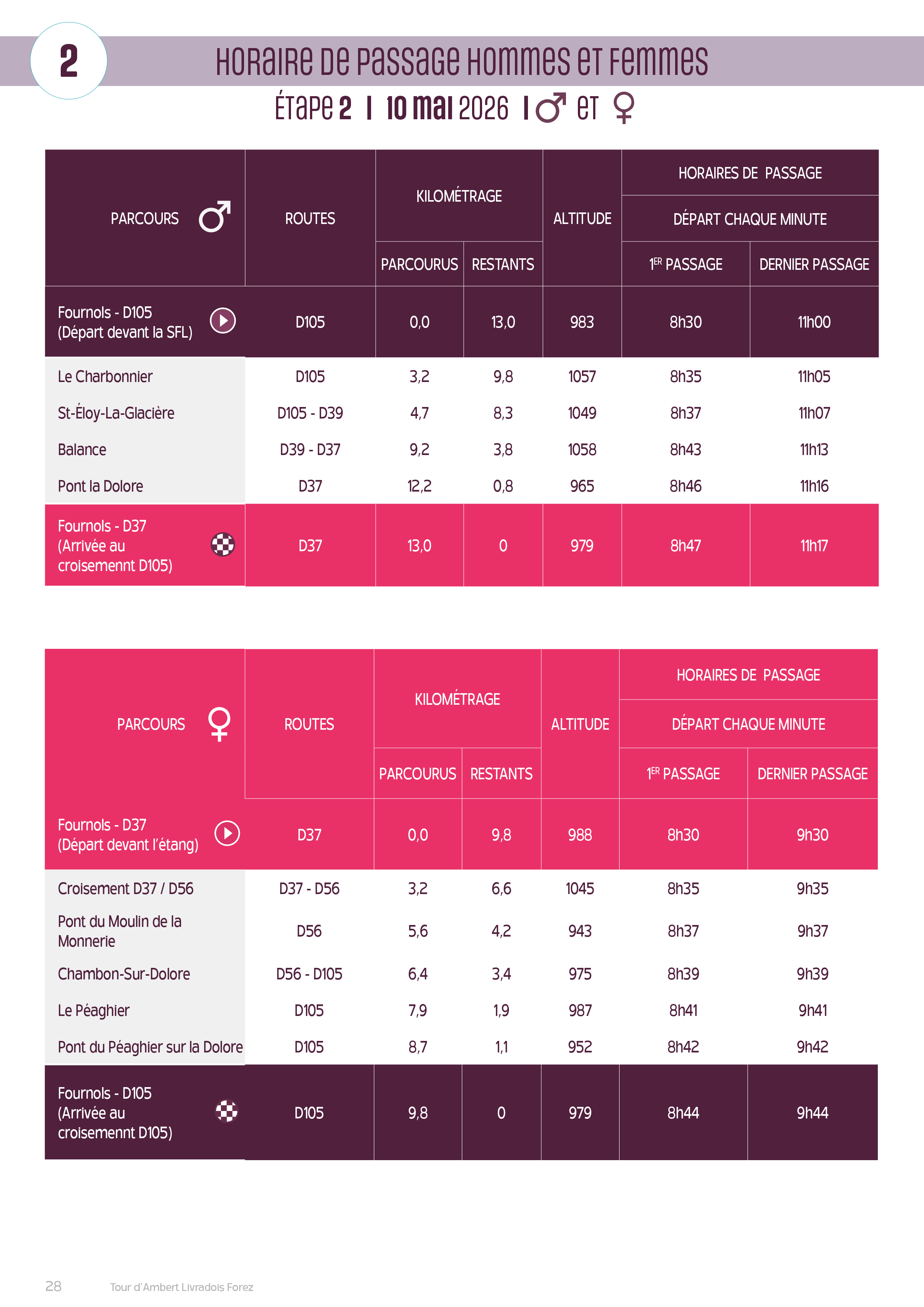 Afin de ne pas manquer vos proches ou les athlètes que vous souhaitez suivre, vous trouverez dans les plannings prévisionnels des différentes étapes homme et femme ci-dessous.